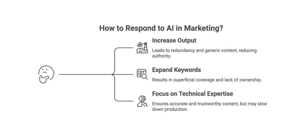 Many marketing leaders react to AI with speed. They increase output, automate blog production, and expand keyword coverage. This response appears logical but it’s misguided.